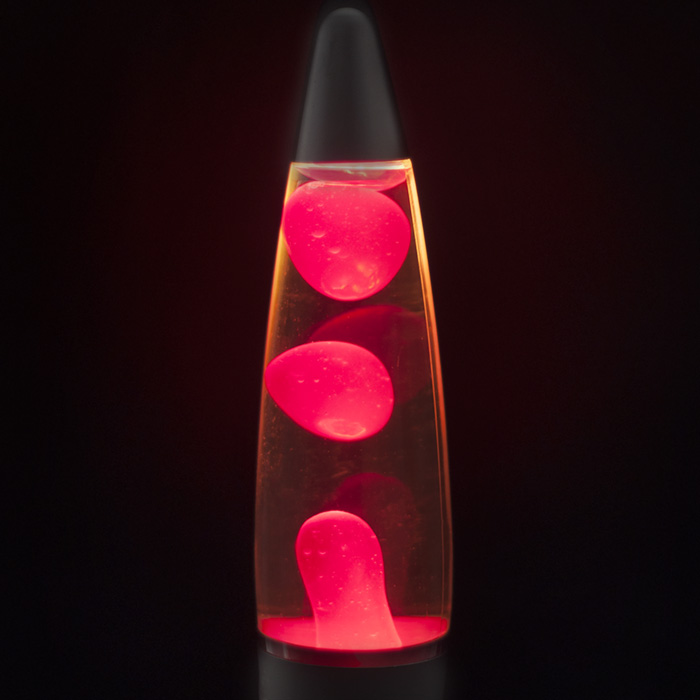 Принцип работы лава-лампы прост: в основании светильника расположена обычная лампа накаливания, которая прогревает стеклянную колбу наполненную особой жидкостью и воском. Это приводит к неторопливому и непрерывному лавообразному перемещению восковых пузырей разного размера и формы.