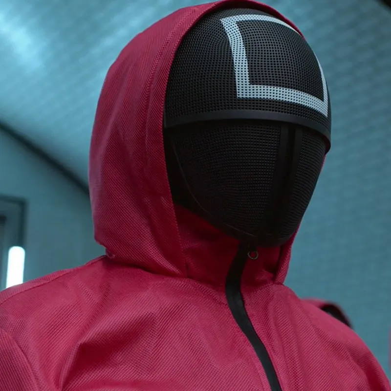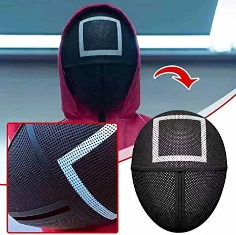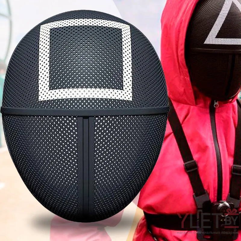 Маска из сериала Игра в Кальмара. Это не просто блестящий способ выделиться на вечеринке.С такой маской можно сделать крутые видеоролики и атмосферные фотографии, ну или просто обращать на себя внимание других людей. Маска очень удобная позволяет носить ее долго без какого либо дискомфорта.