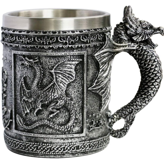 Кто ж не любит драконов?! Даже те, кто никогда не внедрялся в мифологию знает этих легендарных существ. Многие обожают их не в последнюю очередь благодаря крутому внешнему виду, даже без кожи, что шикарно передано на это изделие. Каждый будет рад заиметь такой аксессуар в свое пользование, но только представте восхищение фаната Скайрима) С такой кружкой хоть на Высокий Хротгар, хоть на Солтстейм, за новыми драконьими душами!