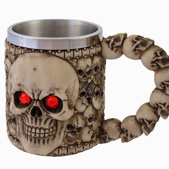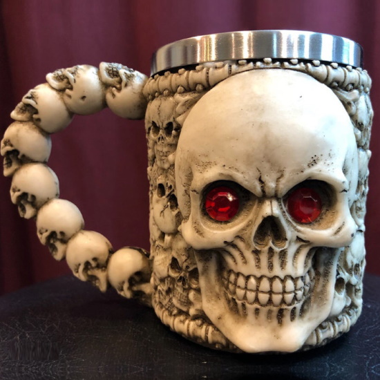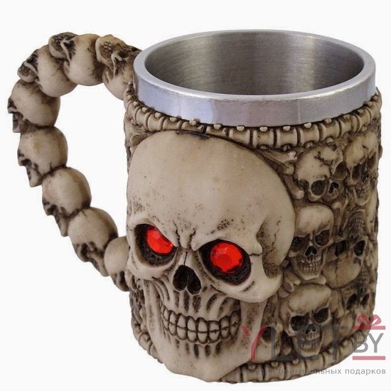 Роскошная большая кружка Череп в стиле фэнтези - отличный подарок брутальному мужчине.Такая кружка подойдет не суеверному человеку, который не боится вида черепов больших и малых, который смеется над смертью и презирает страх перед ней. Такой мужественный человек будет с удовольствием пить любимые напитки из кружки с сакральными знаками, воображая себе повергнутые головы своих соперников.