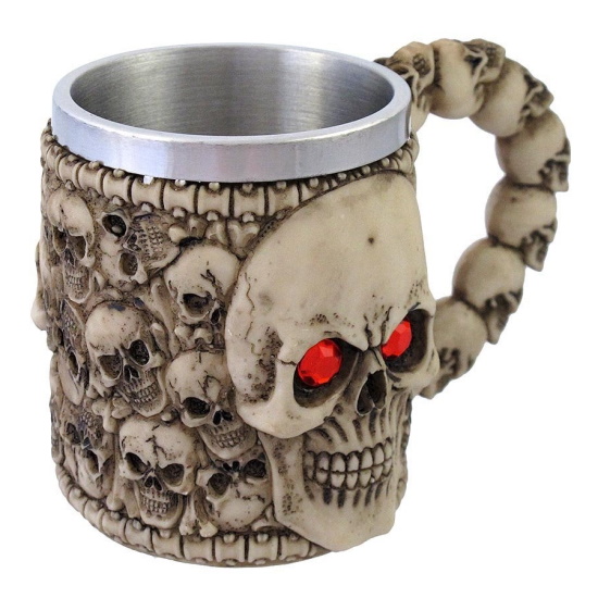 Сегодня кружка — это не просто предмет посуды, а настоящая дизайнерская находка в разных проявлениях и для разных целей. Кружка с объемной поверхностью станет отличным подарком для любителей готического стиля, оценят кружку "Череп с красными глазами" и истинные бруталы. Внутренняя часть кружки выполнена из нержавеющей стали, что позволяет сохранять температуру напитка некоторое время.