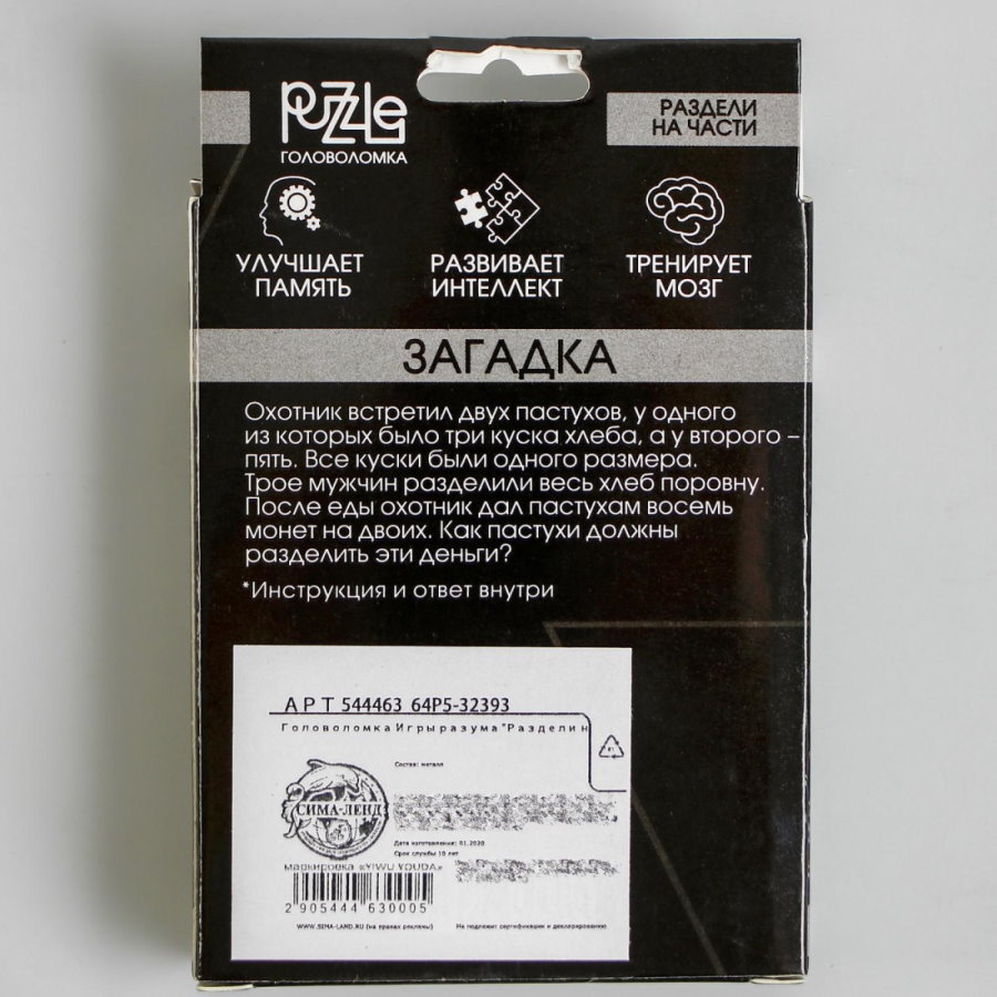Головоломка Игры разума "Раздели на части" №5 - это уникальный товар, способствующий развитию эрудиции, воображения, логического мышления, смекалки и умения концентрировать внимание. Хотите продемонстрировать друзьям свои интеллектуальные способности? Головоломка Игры разума "Раздели на части" №5 поможет Вам в этом.