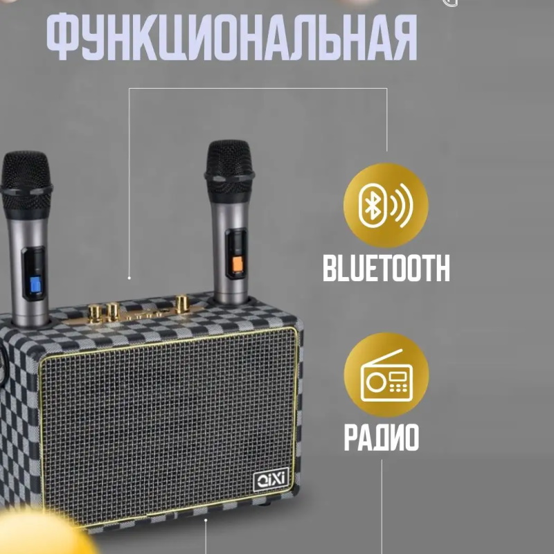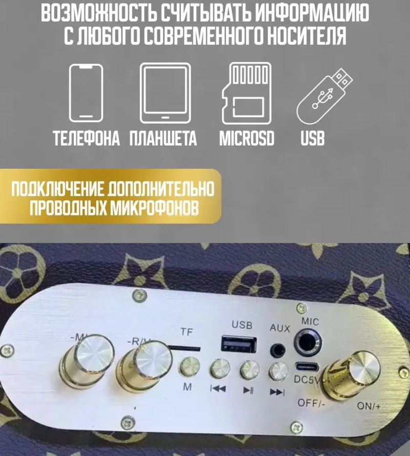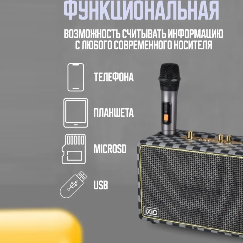 Портативная колонка SK-2036 (караоке) в стиле ретро. Ее изысканный дизайн не оставит никого равнодушным. Она украсит любой интерьер. Колонку блютуз можно взять с собой в путешествие, поход, на работу, дачу, фитнес, вечеринку, занятия спортом на открытом воздухе и т.п. Благодаря музыкальной акустической системе вы можете слушать любимую музыку в любом месте.