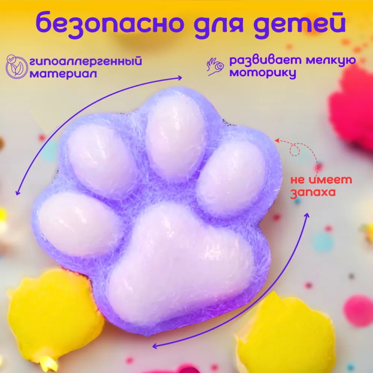 Изготавливаясь из высококачественных материалов, игрушка безопасна для детей всех возрастов. Её текстура приятна на ощупь, а под воздействием сжатия игрушка возвращается в свою первоначальную форму, что делает процесс игры еще более увлекательным. Сквиш лапка идеально подойдет для занятий, связанных с расслаблением, медитацией или просто для снятия напряжения после долгого рабочего дня.