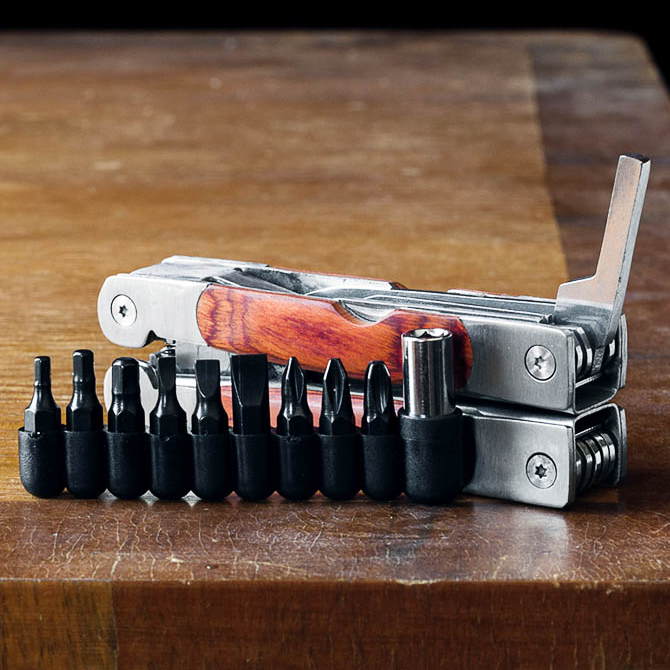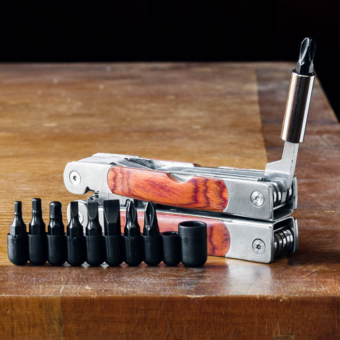 Мультитул с битами представляет собой складные плоскогубцы с полыми рукоятками, в которых располагаются дополнительные приспособления.