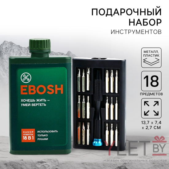 Подарочный набор отверток в фляге «Хочешь жить», 18 предметов