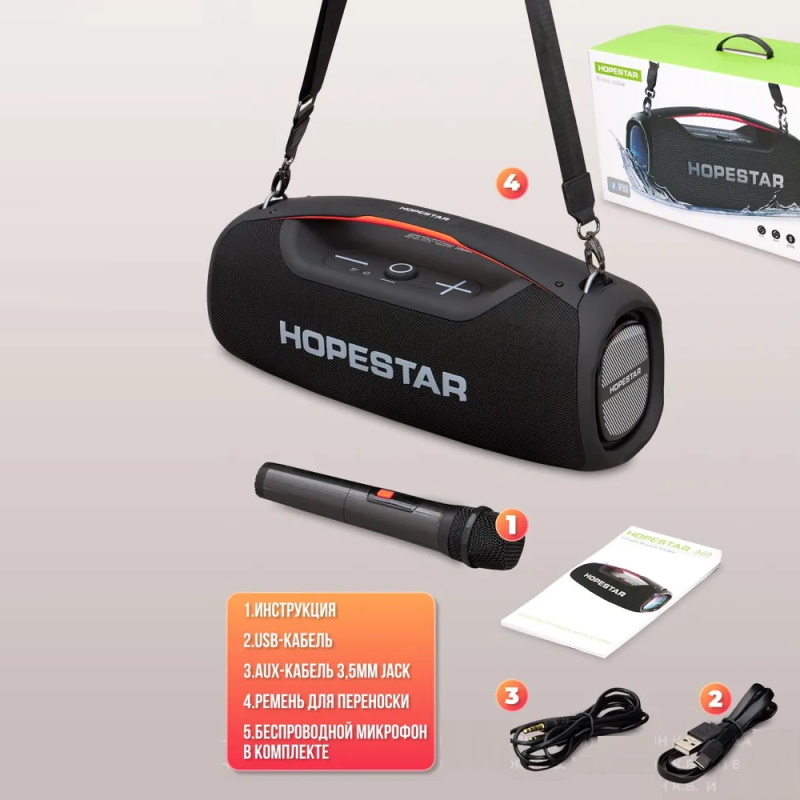 Портативная колонка Hopestar А60, 100W с микрофоном Черная