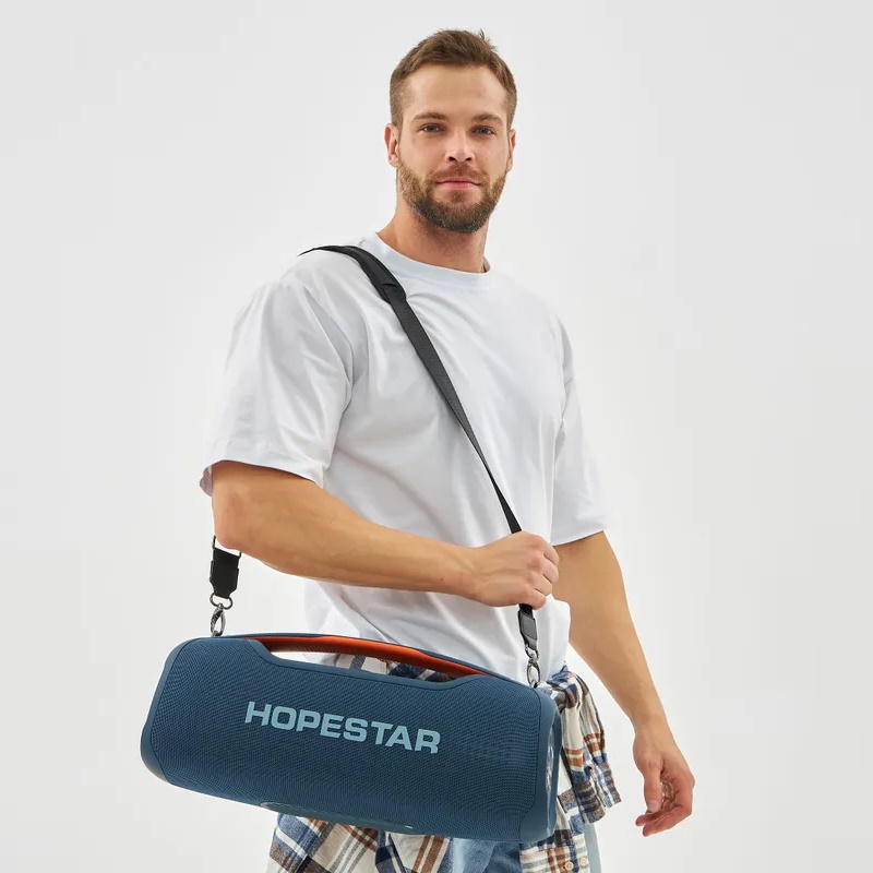 Колонка Hopestar A60 - это стильная и мощная новинка от бренда качественных Bluetooth колонок с великолепным, насыщенным звучанием. Модель Hopestar A60 выполнена из прочного пластика с Soft Touch покрытием, а лицевая часть и динамики надежно защищены синтетической тканью, а кнопки управления прорезинены и нажимаются с отчетливым кликом.