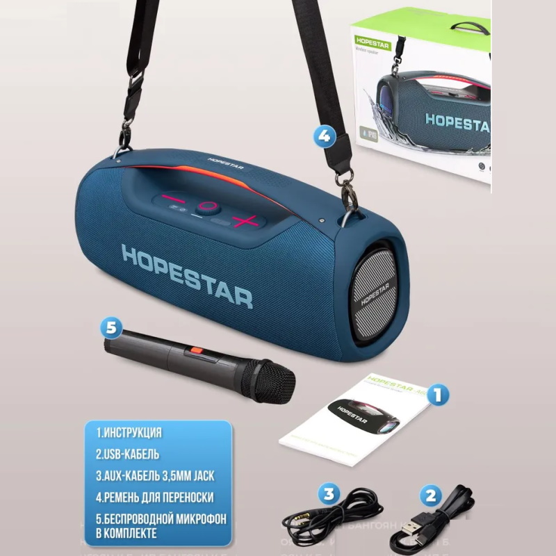 Портативная колонка Hopestar А60, 100W с микрофоном Синяя