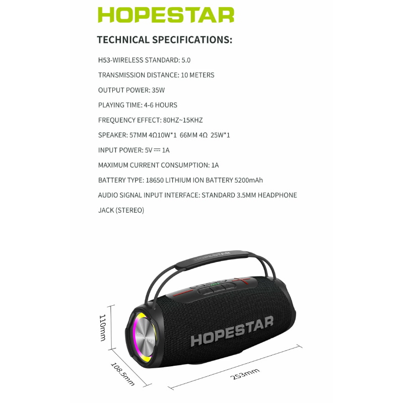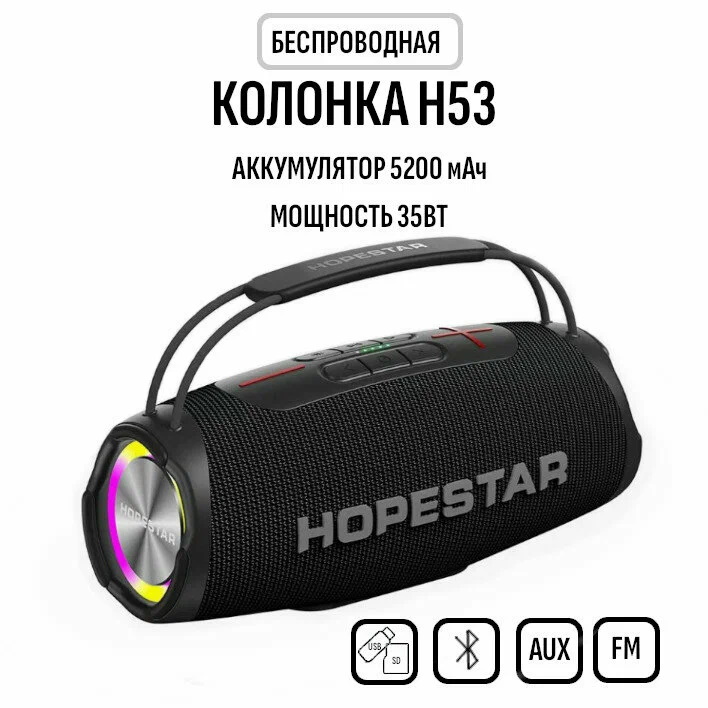 Hopestar H53. С её помощью Вы сможете наслаждаться любимой музыкой в высоком качестве, на улице, в дороге или просто в комнате квартиры.Технические характеристики: