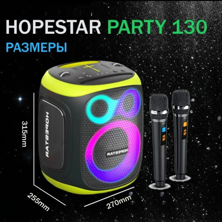 Колонка Hopestar Party 130 - новая портативная колонка оснащена новым Bluetooth 5.3 и емкостью аккумулятора 22000 мАч, что обеспечивает до 8 часов непрерывного воспроизведения музыки без подзарядки. Она имеет LED подсветку и объемный звук для полного погружения в музыку.