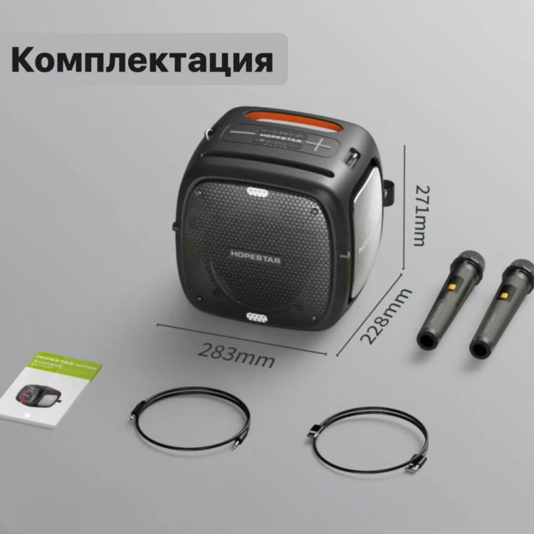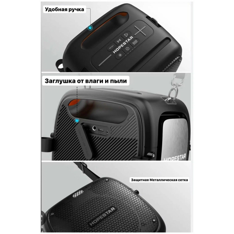 Портативная колонка Hopestar Powerful Party one 80W с двумя микрофонами Черная