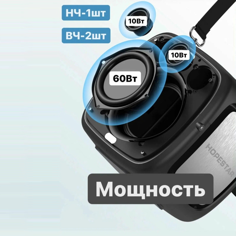Мощная беспроводная караоке bluetooth колонка HOPESTAR PARTY ONE - это поистине революционное слово в индустрии портативных акустических систем! Обладая уникальным дизайном, данная колонка способна выдавать звук пиковой мощностью в 80 Вт! Оснащена сабвуфером и твиттером с мощнейшим басом, но в тоже время кристально чистыми и прозрачными средними и высокими частотами.