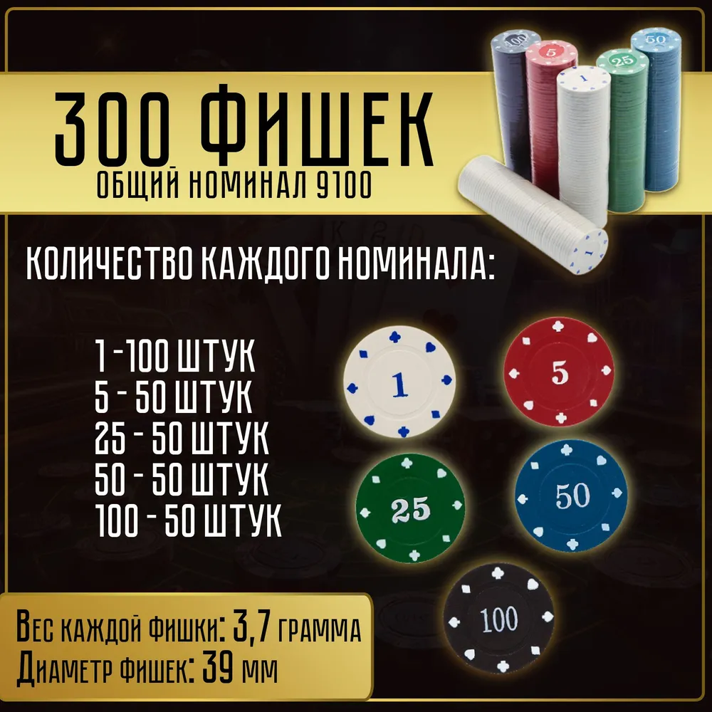 5 номиналов фишек (1, 5, 25, 50, 100)