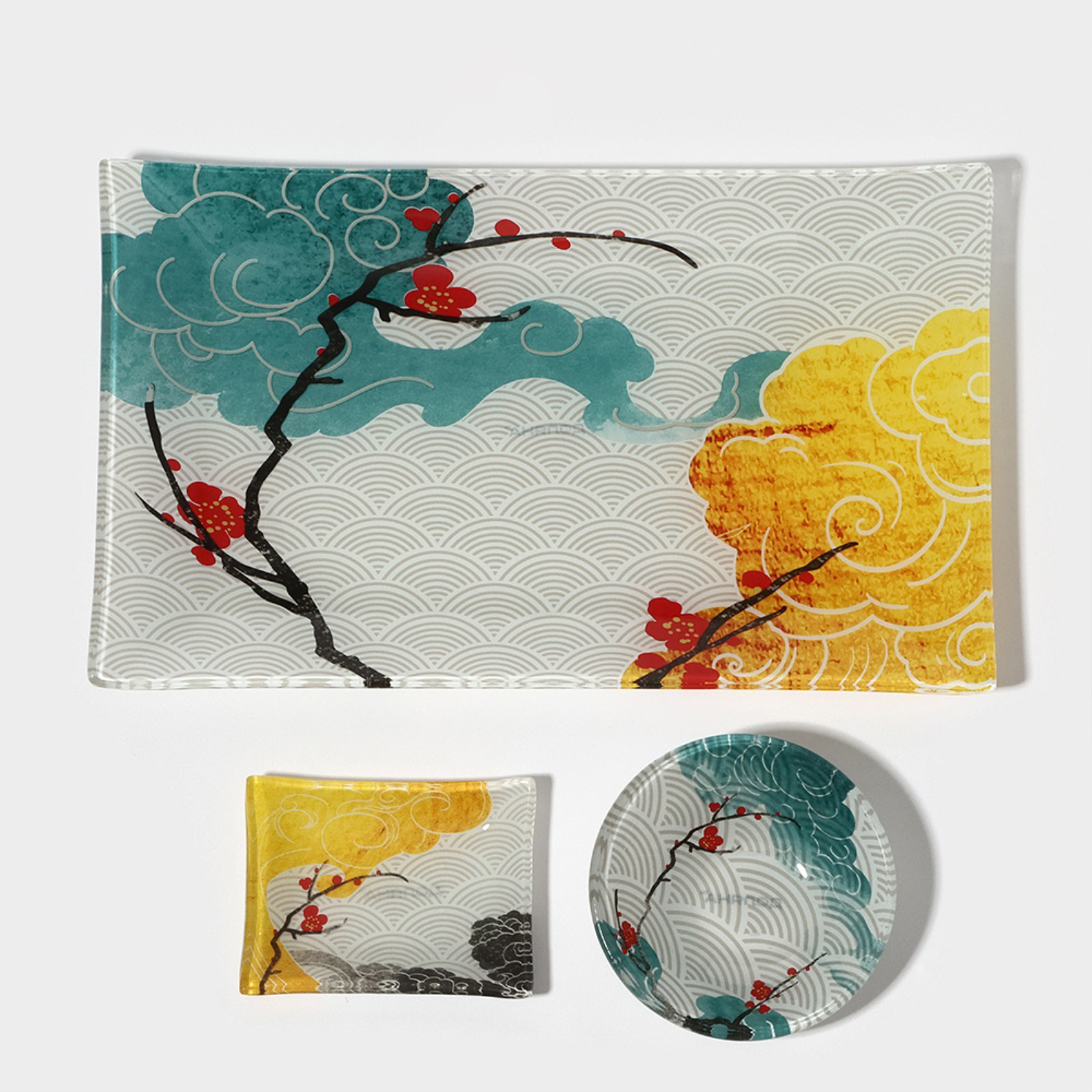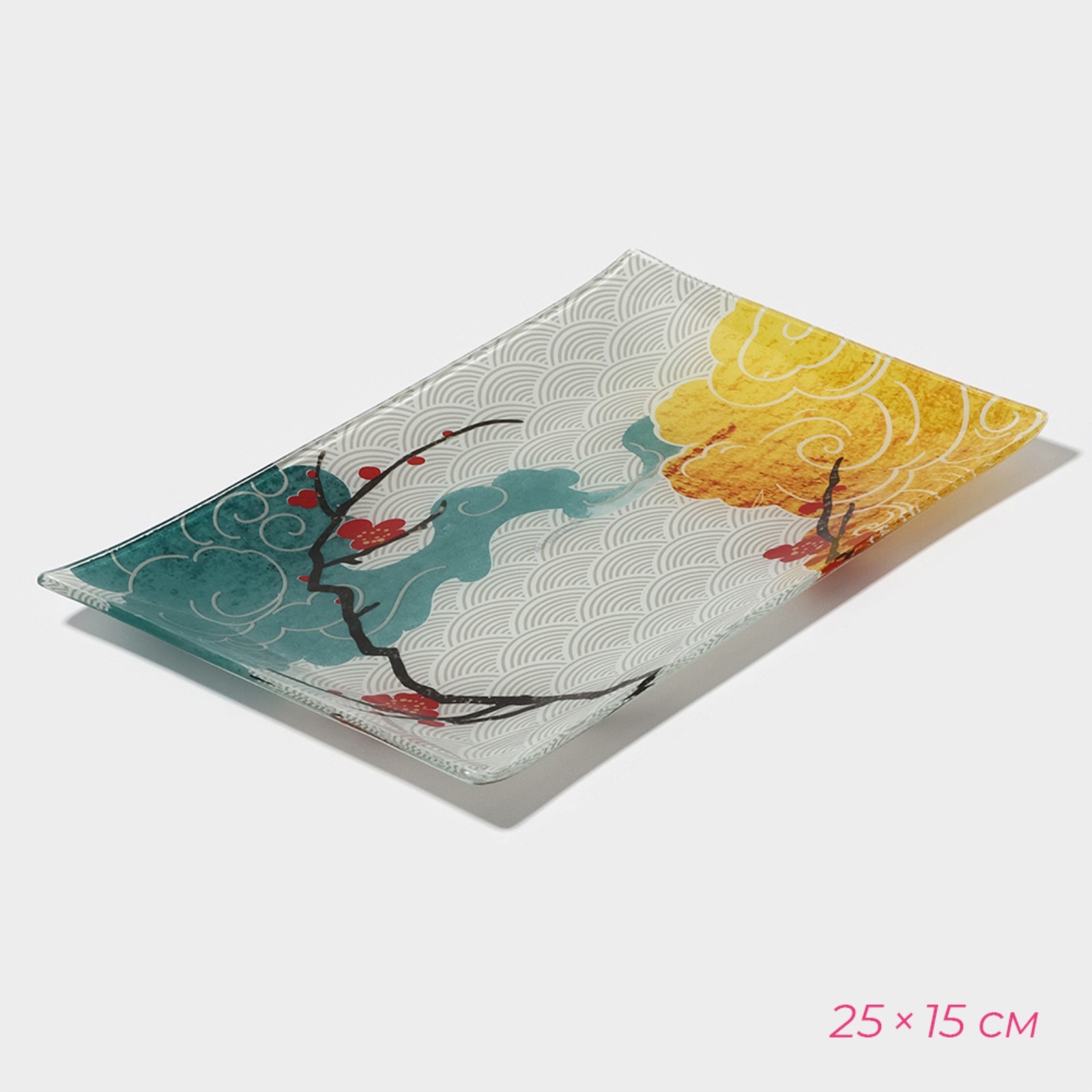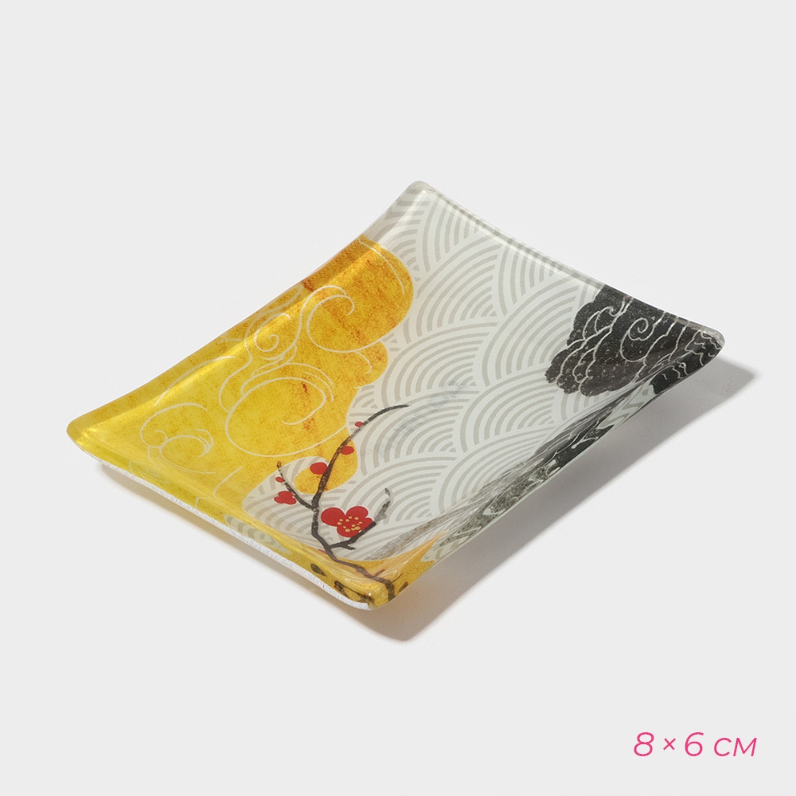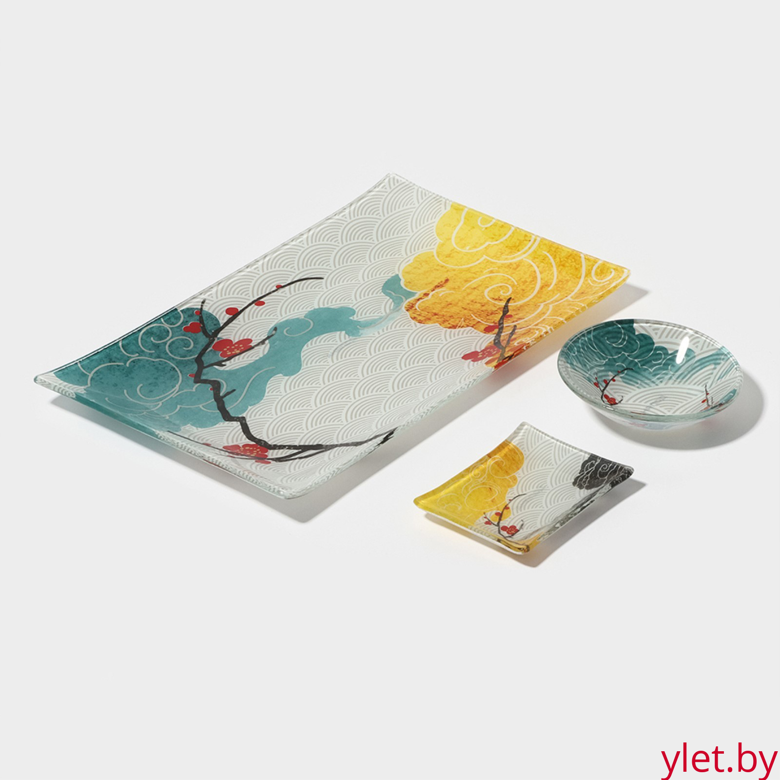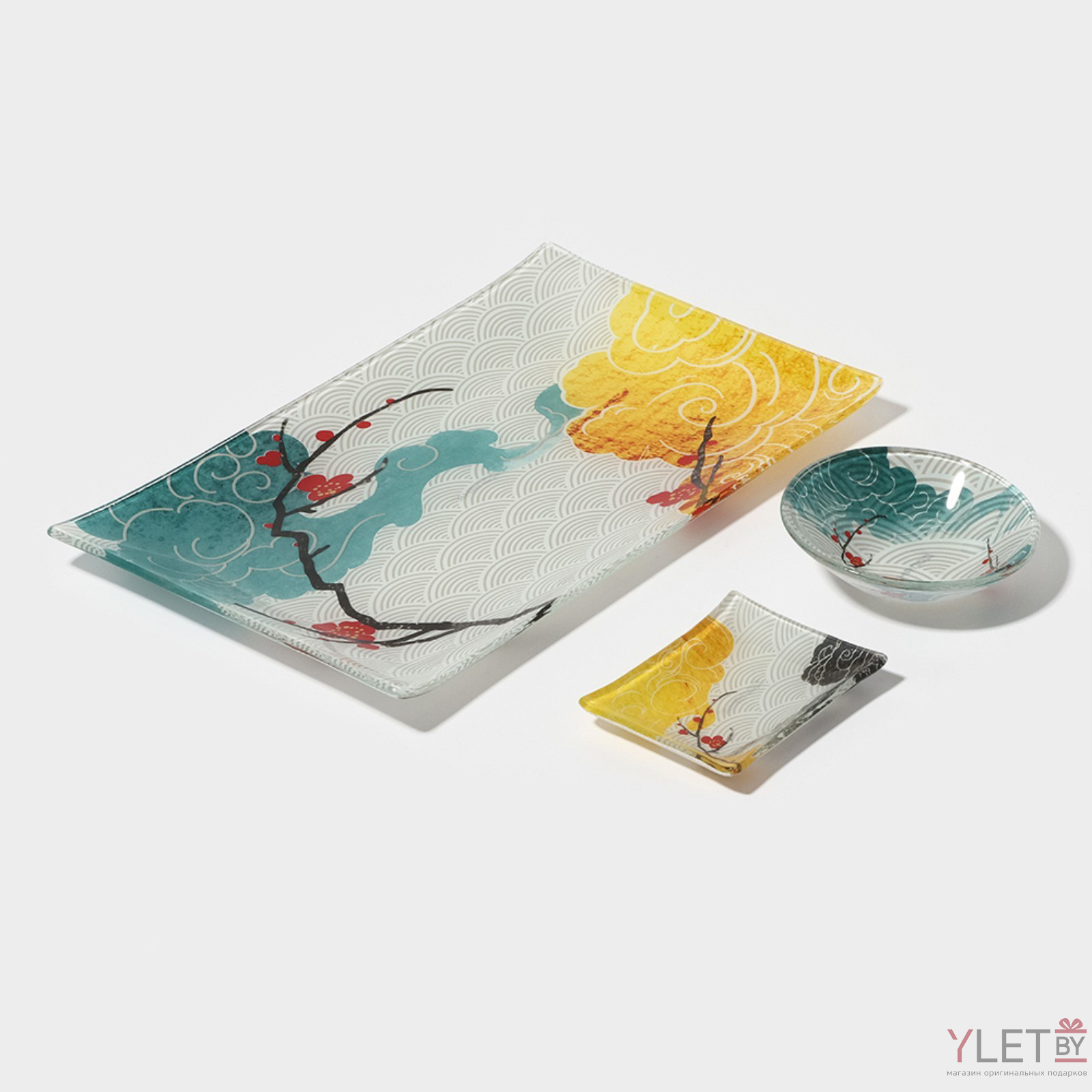 Набор для суши из стекла «Абстракция», 3 предмета: соусники 8×2 см, 8×6 см, подставка 25×15×2 см