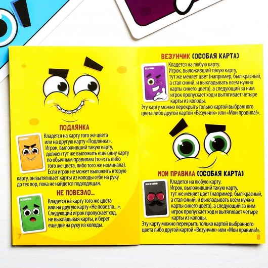 Что же нужно делать? Выкладывать карточки по определённым правилам и выполнять указанные на них действия. А главное – быстрее всех избавиться от карт!