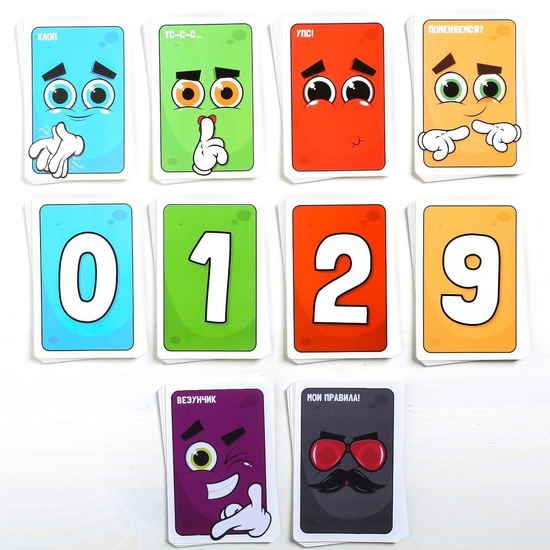 Итак, участникам предстоит по очереди выкладывать карточки на стол. Просто так? Конечно, нет! Выкладывать их нужно так, чтобы они совпадали либо по цифре, либо по цвету.