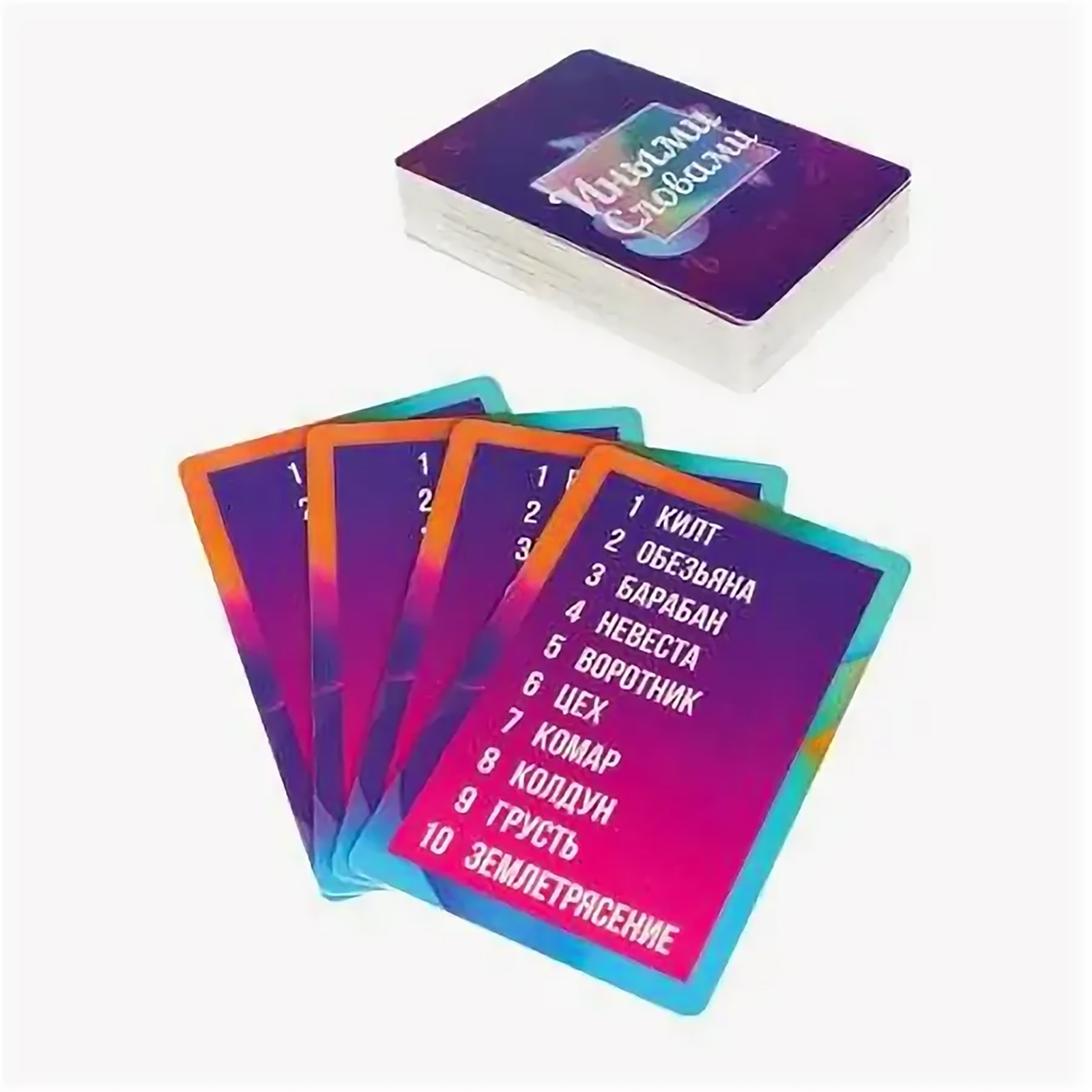 - Количество карточек: 55 карточек с разнообразными словами, которые участникам предстоит объяснить другими словами.