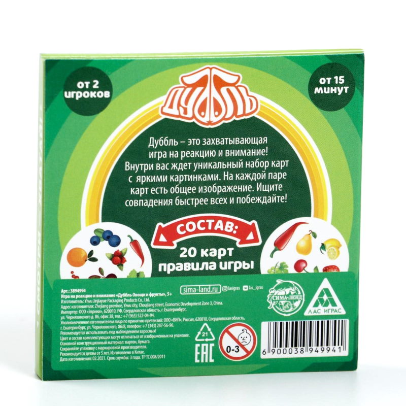 Это простая и захватывающая игра на внимание, которая познакомит маленьких участников с овощами, фруктами и ягодами со всего мира! Вас ждут карты с уникальным набором ярких картинок. На каждой паре карт есть общее изображение. Ищите совпадения быстрее всех и побеждайте!
