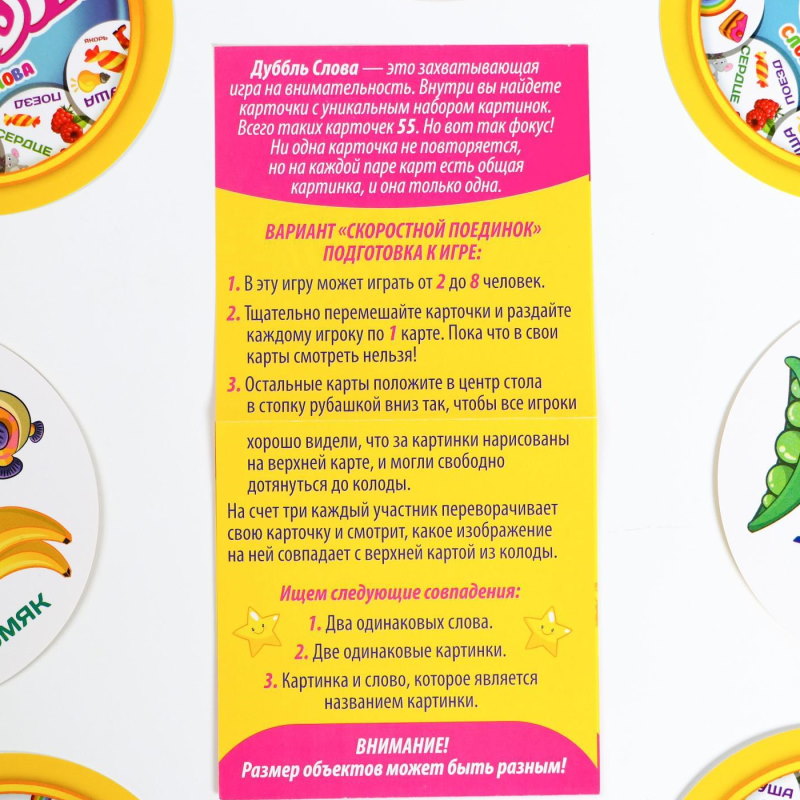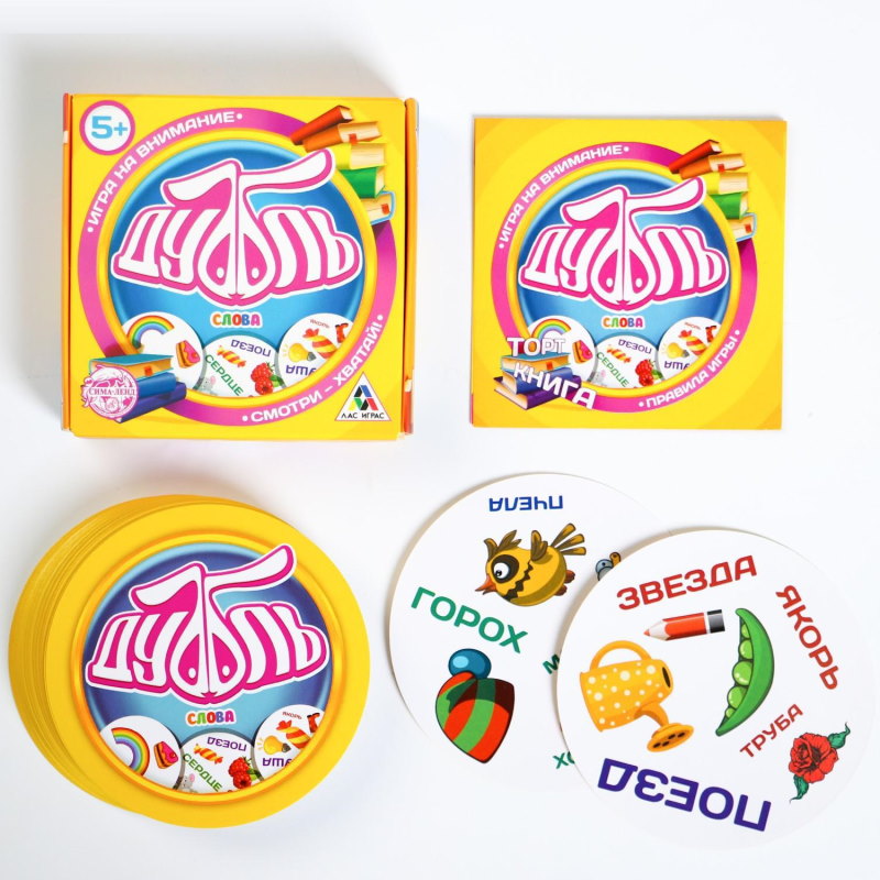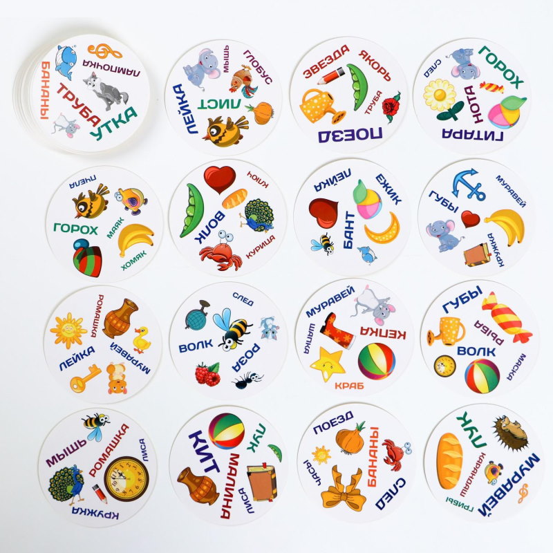 Игроки ищут следующие совпадения: 2 одинаковые слова, 2 одинаковые картинки, картинка и слово, которое является названием картинки.