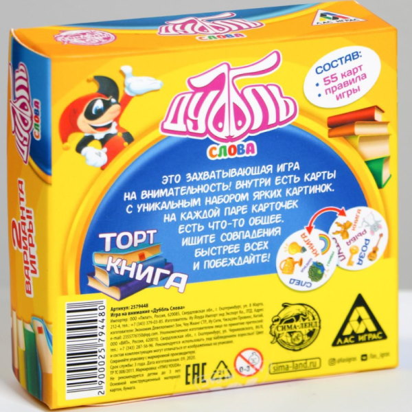 Это захватывающая игра на внимательность, в которой собрано 55 карточек. Но вот фокус! Ни одна из них не повторяется, но в каждой паре есть общая картинка — и она только одна!