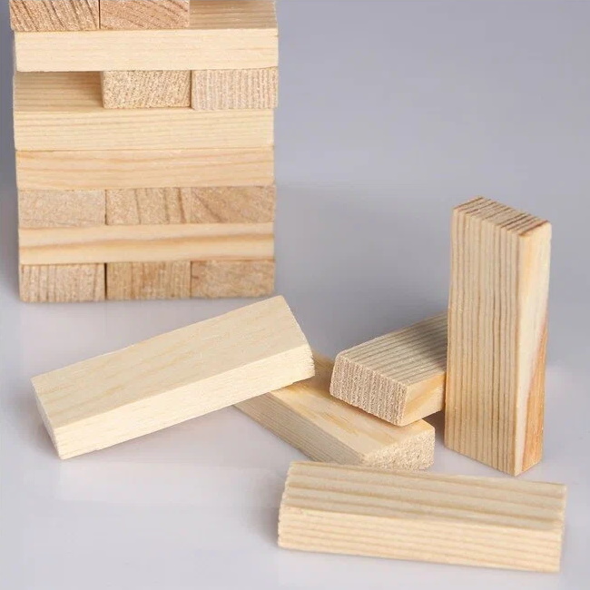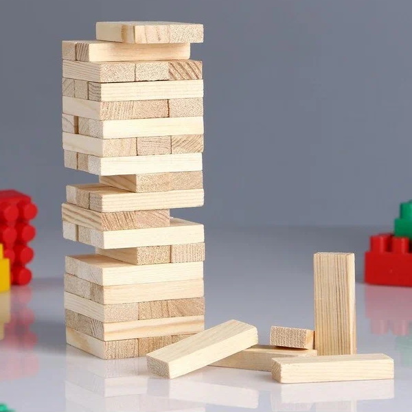 - Поочерёдно вытягивайте бруски из разных частей башни так, чтобы она не упала.