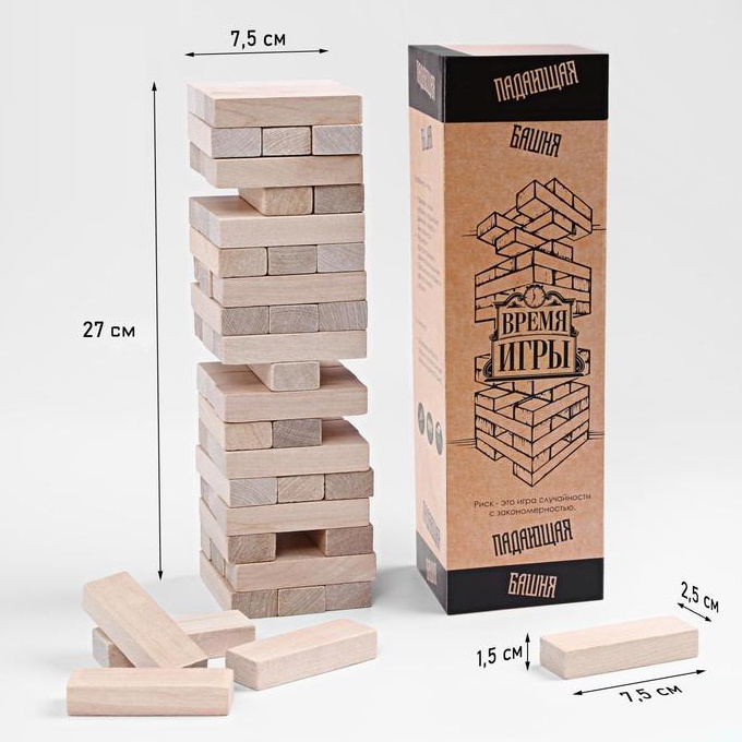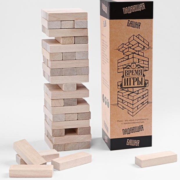 Падающая башня Время игры, 54 бруска, высота 27 см