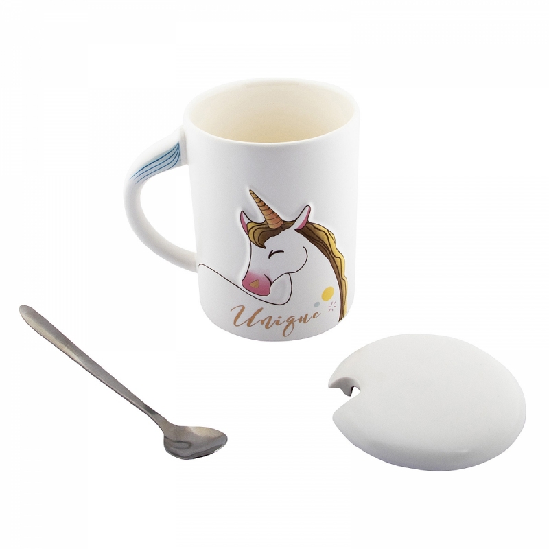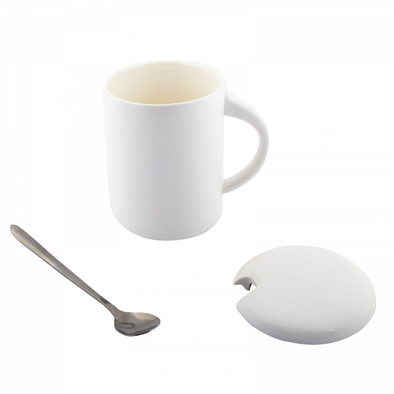 Размер самой кружки без крышки составляет 107х85х120 мм, а керамическая крышка идеально подходит по размеру — 87х87х10 мм. Длина металлической ложки — 163 мм, что обеспечивает комфорт при использовании. Вес нетто кружки составляет 346 гр, а её полезный объём — 400 мл.