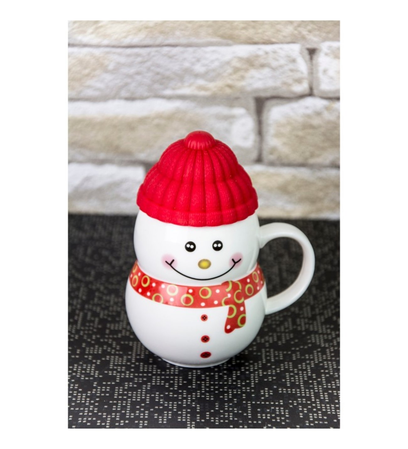 Силиконовая шапочка не только добавляет милый штрих к образу, но и играет важную роль — она предотвращает остывание вашего напитка, сохраняя его горячим дольше. Улыбающаяся мордашка снеговика и яркий цветной шарфик завершает этот веселый и радостный образ, поднимая настроение в любое время года.