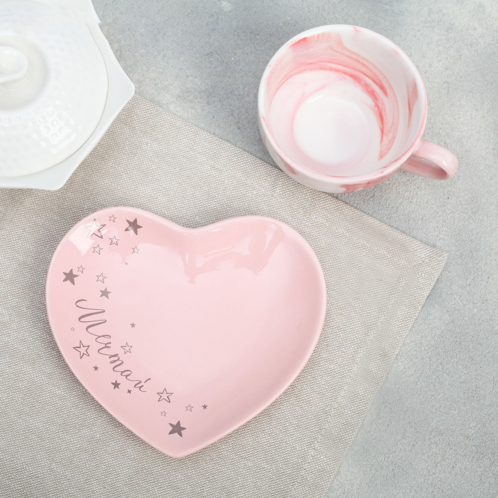 Каждый элемент набора тщательно создан, чтобы дарить не только эстетическое удовольствие, но и практичность. Розовый цвет придает элегантности и романтики, а форма сердца добавляет особый шарм и тепло в каждую чашечку чая. Сбоку сердечка красуется вдохновляющая надпись "Мечтай", которая наполняет атмосферу положительными эмоциями и напоминает о важности мечтаний.