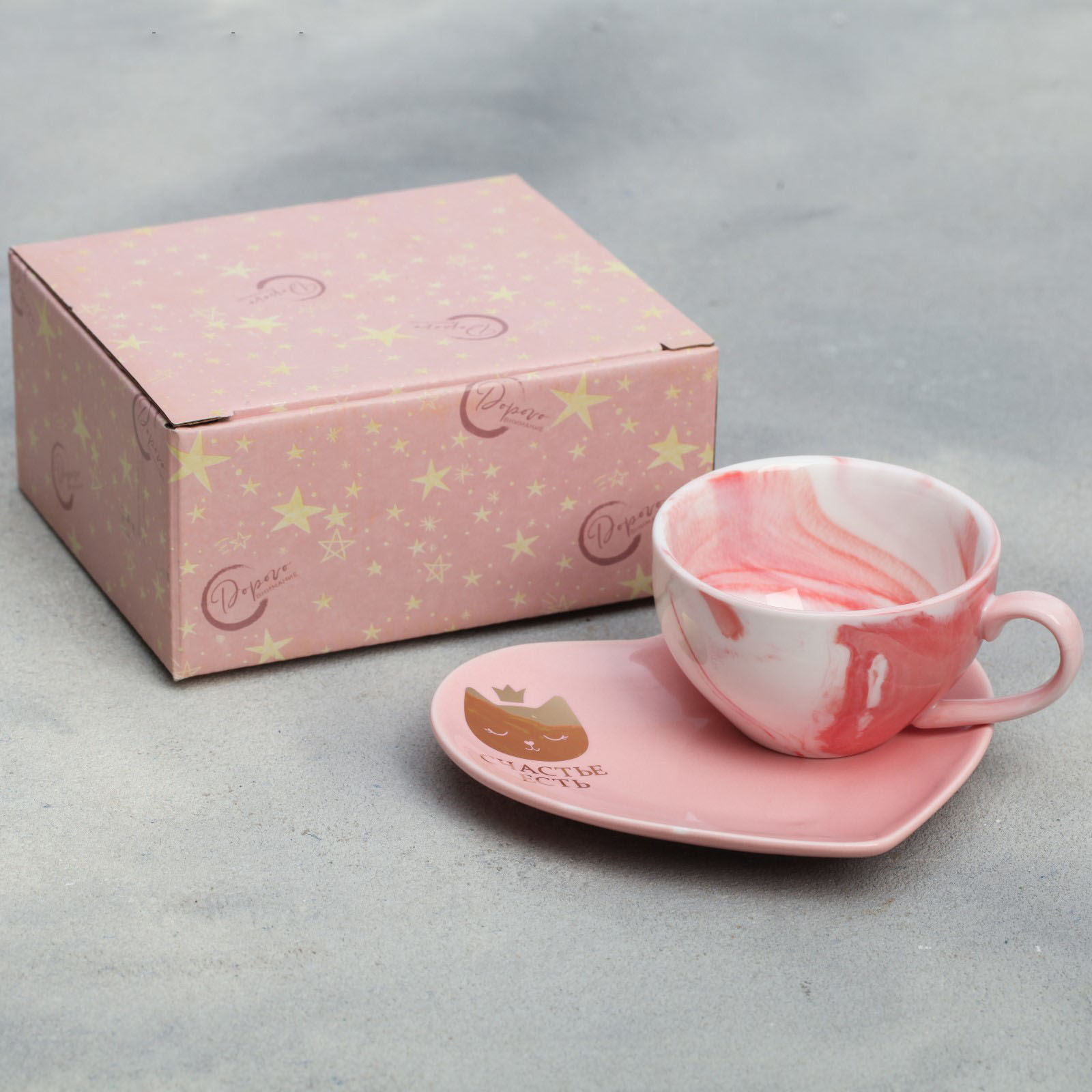 Подарочный набор керамический «Счастье есть»: кружка 120 мл, блюдце, цвет розовый