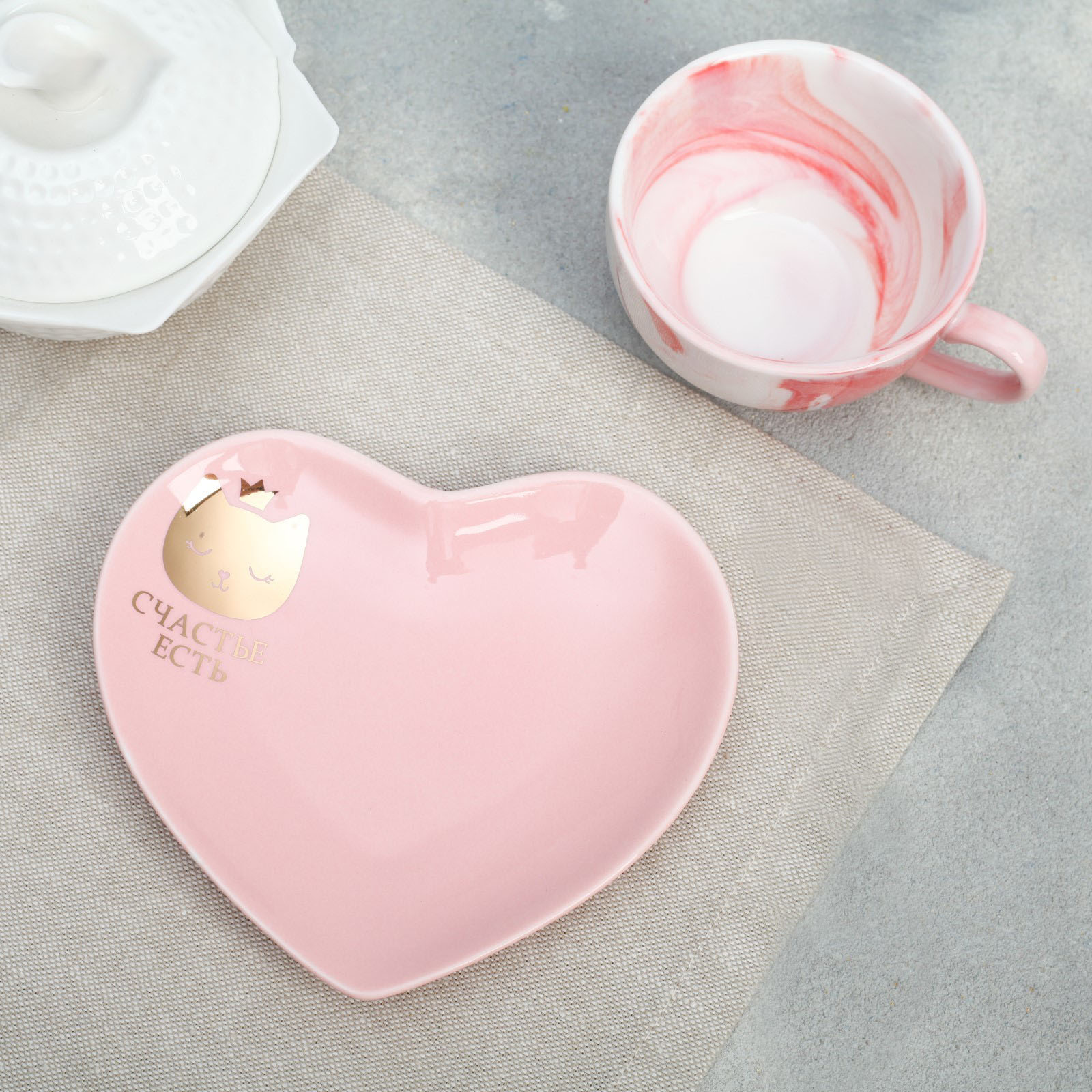 Блюдце, выполненное в форме сердца, добавляет нотку романтики и оригинальности.