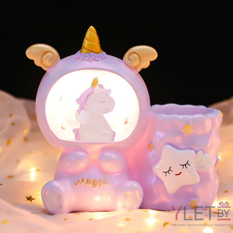 Ночник - подставка для канцелярских принадлежностей «Magic unicorn», pink (13,5 см), пластик