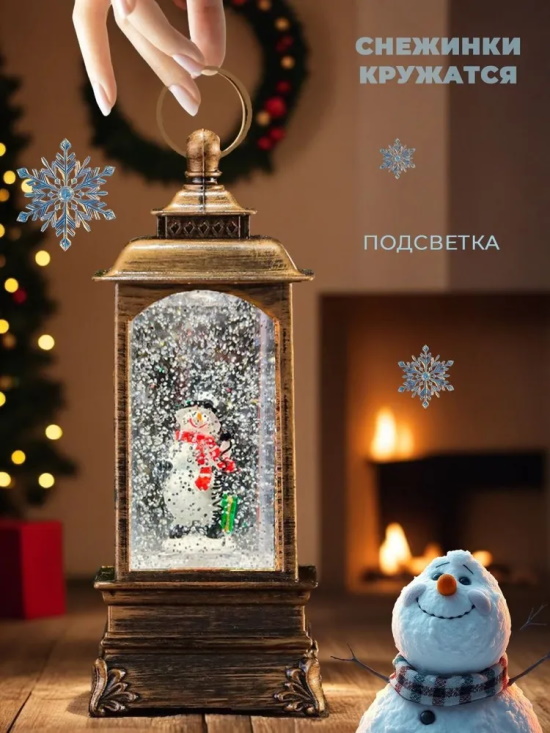 Новогодний фонарик-ночник, который станет отличным дополнением к вашему праздничному декору. Этот фонарик имеет волшебное внутреннее убранство, наполненное снегом и различными фигурками, создавая неповторимый и живописный эффект. Особенностью этого фонарика является его подсветка, которая создает мягкое и приятное освещение в комнате. Он идеально подходит для создания уютной и романтической атмосферы во время новогодних праздников.