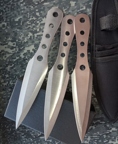 Комплект ножей может быть использован для развлекательных или спортивных целей. Сбалансированность конструкции обеспечивает точность попаданий в цель. Для изготовления лезвия использовалась нержавеющая сталь 440С. Комплект включает в себя 3 ножа и чехол для них.