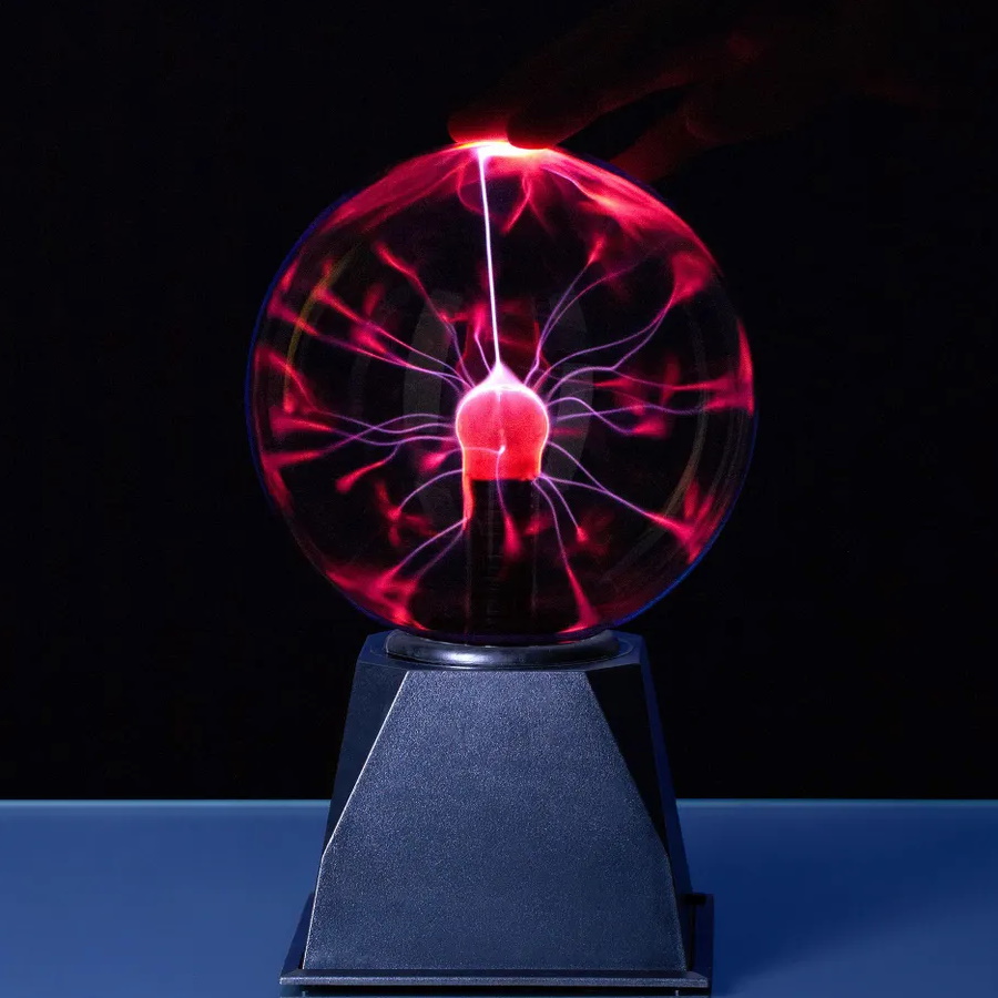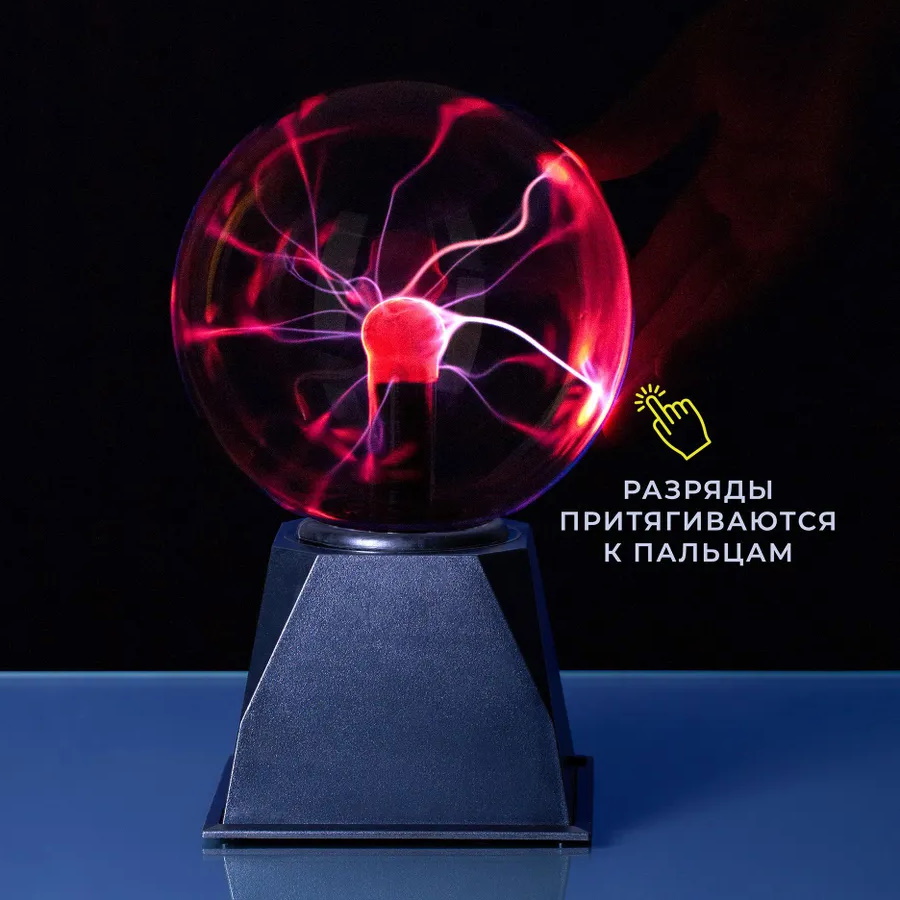 Плазменный светильник в виде шара на подставке при включении создаёт внутри стеклянной сферы множетсво цветных молний, разбегающихся во все стороны из центра.