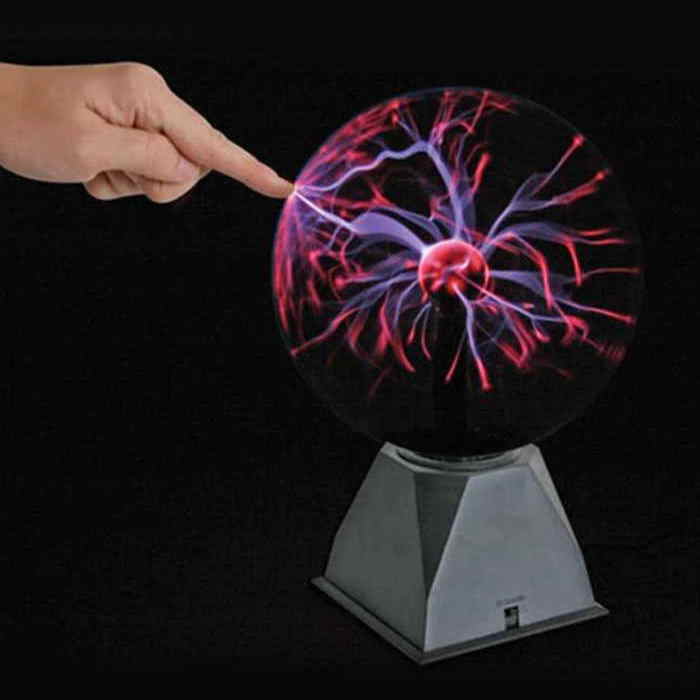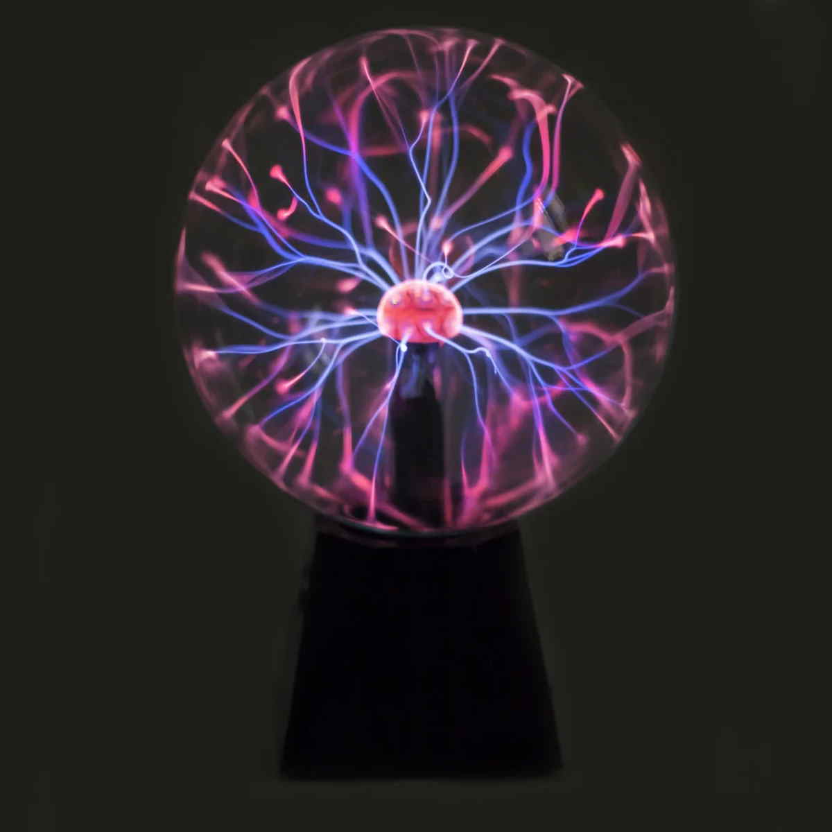Плазменный светильник в виде шара на подставке при включении создаёт внутри стеклянной сферы множество цветных молний, разбегающихся во все стороны из центра.