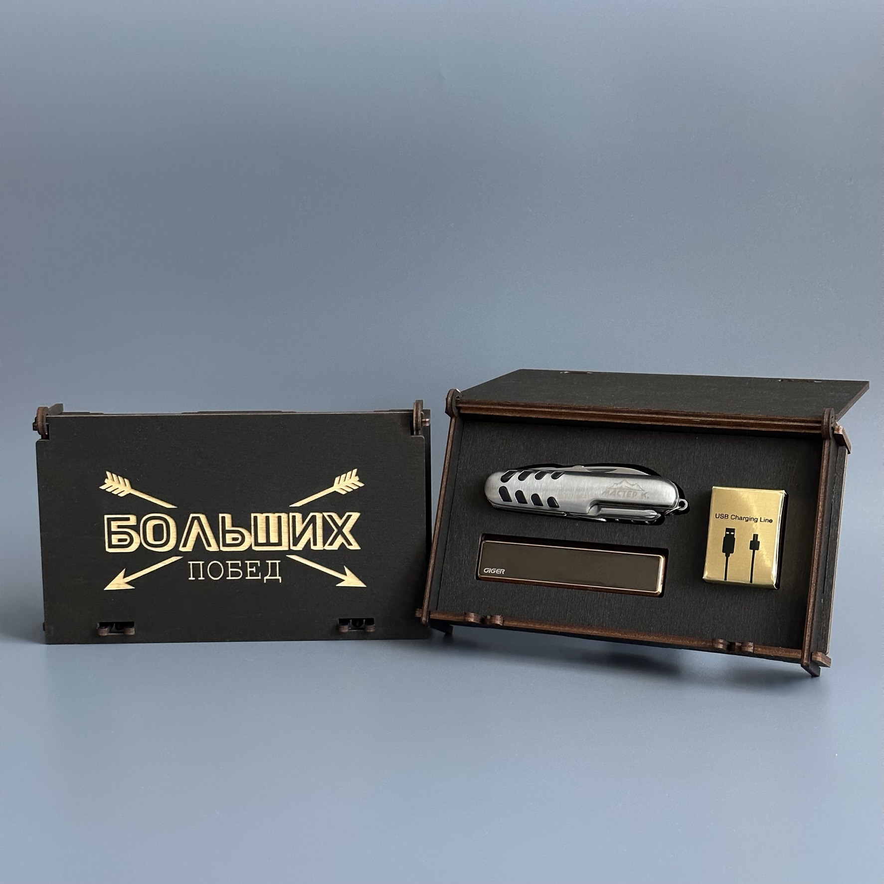 Подарочный набор "Больших побед" — это отличный выбор для настоящих мужчин, которые стремятся достигать вершин и не боятся преодолевать препятствия. Этот набор стал идеальным сочетанием стиля и практичности, подходящий для тех, кто ценит качество и готов к любым вызовам судьбы.