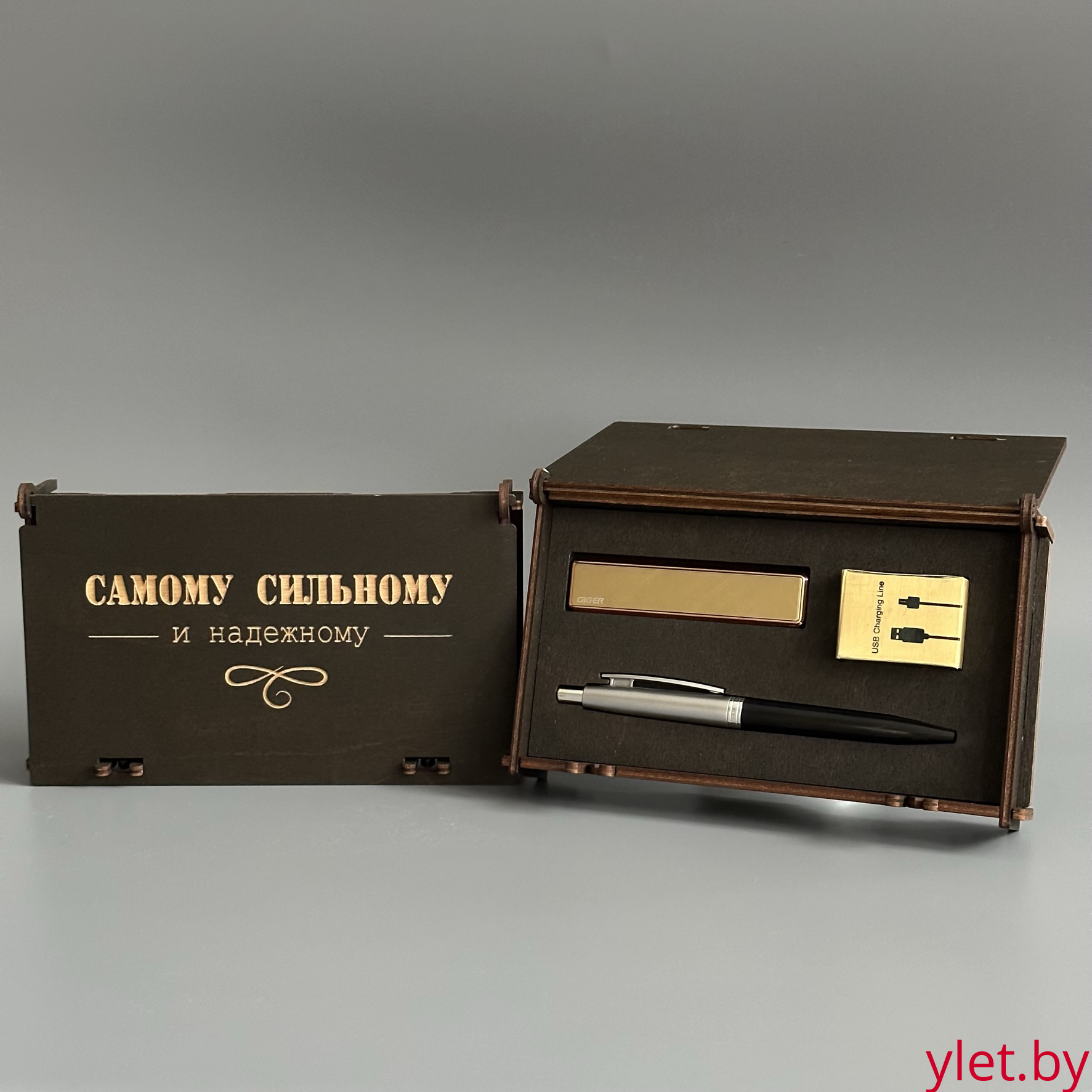 Подарочный набор "Самому сильному и надежному" (Ручка, USB-Зажигалка Ciger, Зарядный кабель)