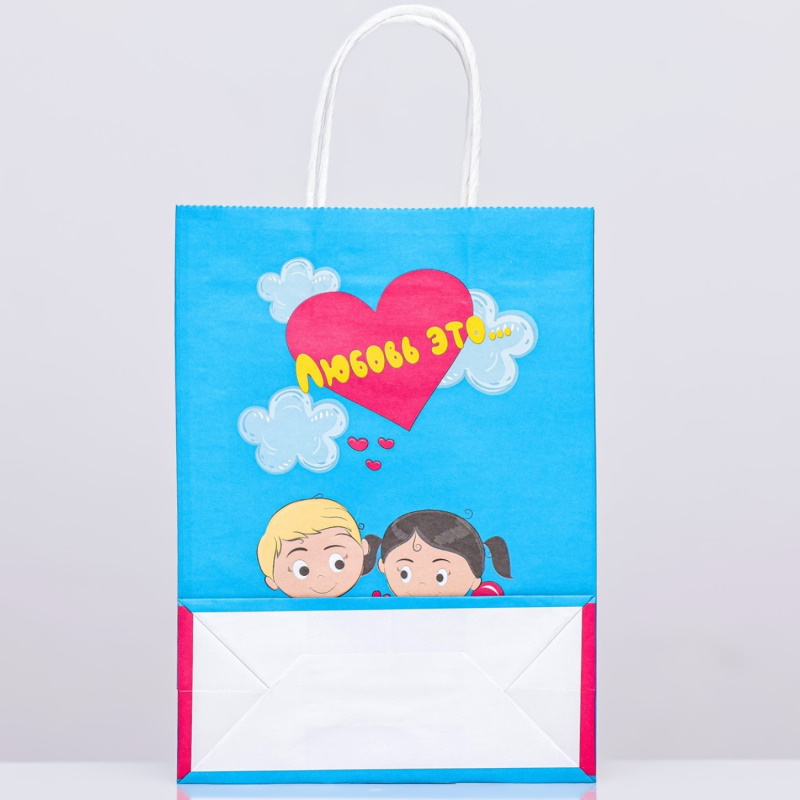 Пакет крафт Love is, Синий, 18 х 8 х 25 см