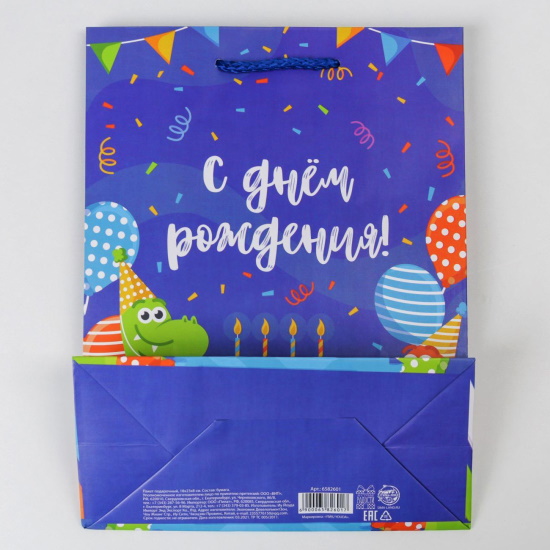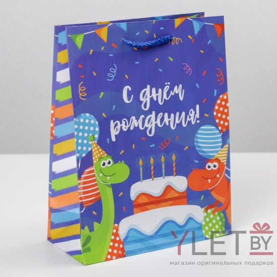 Пакет ламинированный Праздничные динозаврики 18 х 23 х 8 см