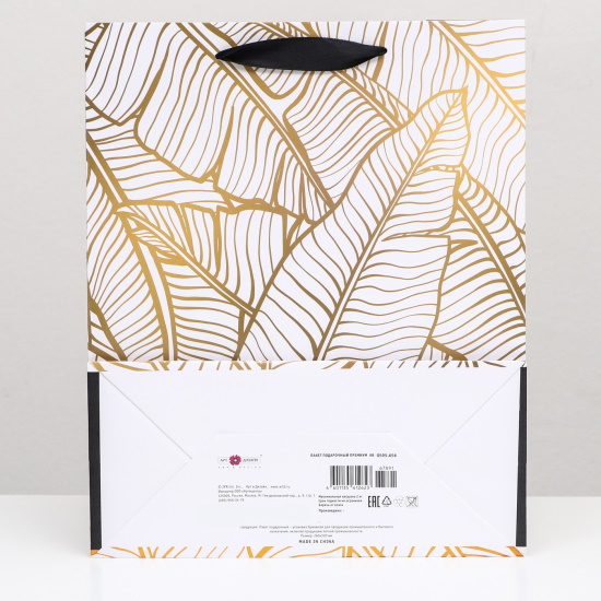 Пакет подарочный Пальма, золото, полосы 26 х 36 х 11.5 см