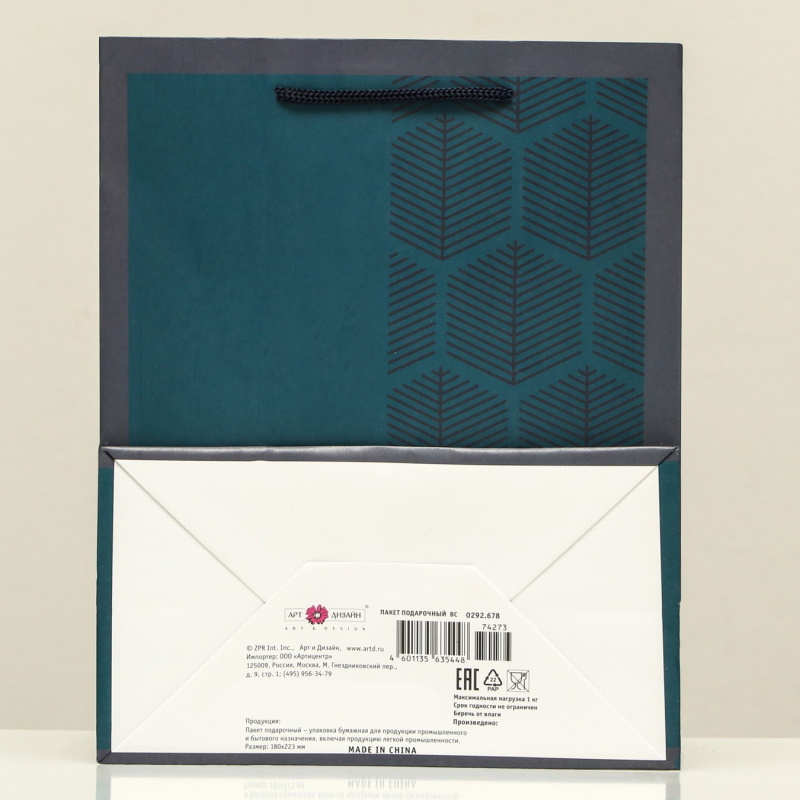 Пакет подарочный Строгость, 18 х 22.3 х 10 см