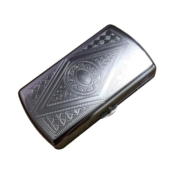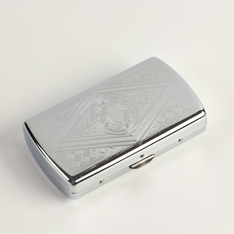 Этот элегантный портсигар, изготовленный из прочного металла, способен вмещать до 12 сигарет.