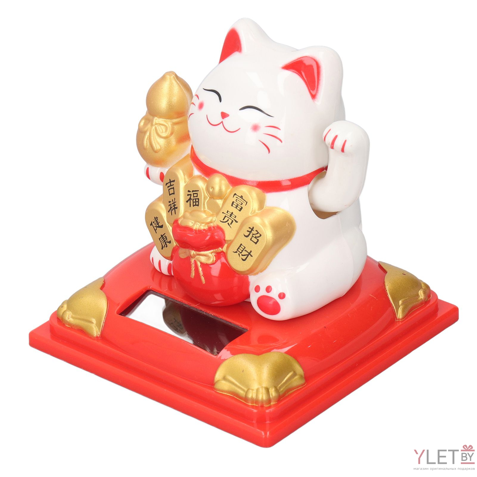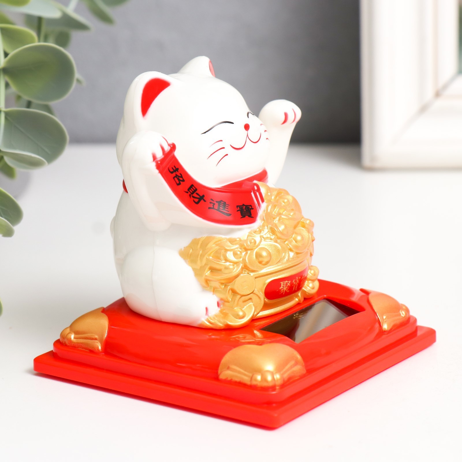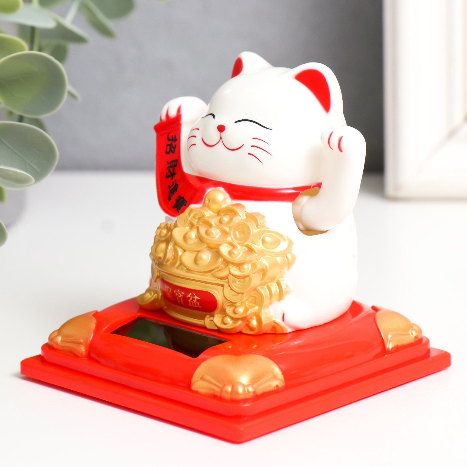 Маятник пластик от солнечной батареи "Белый Манэки-нэко с с горой слитков" 7х7х7,5 см
