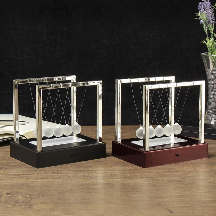 Шары Ньютона сегодня пользуется огромной популярностью у наших клиентов. Система состоит из подставки и пяти металлических шариков, которые подвешены на леске. Для активации маятника вам необходимо отвести один шарик в сторону и отпустить его. Затем наблюдайте, как шарики с противоположной стороны начинают двигаться в зеркальном отображении с той же скоростью. Через определенное время шарики останавливаются. Продолжительность движения зависит от размера и веса шариков: чем тяжелее и больше шарики, тем дольше процесс, и наоборот.