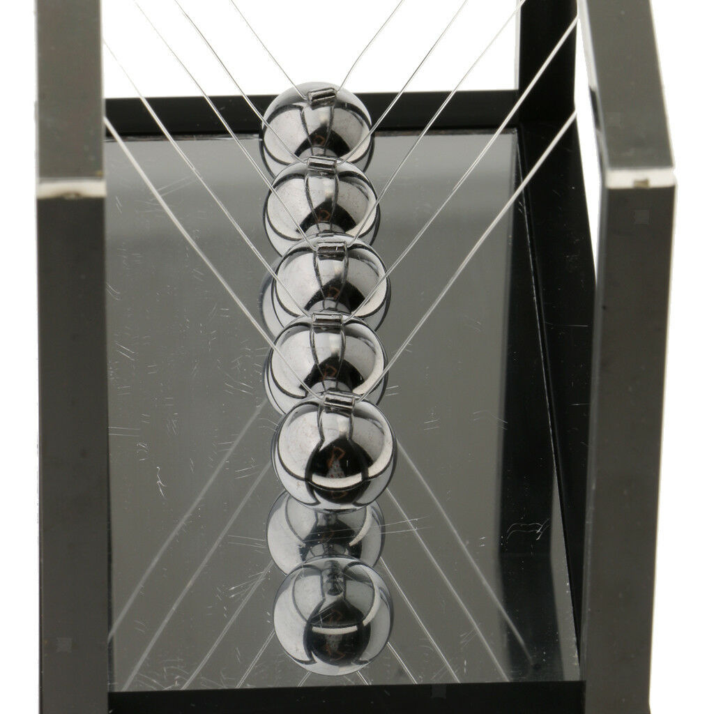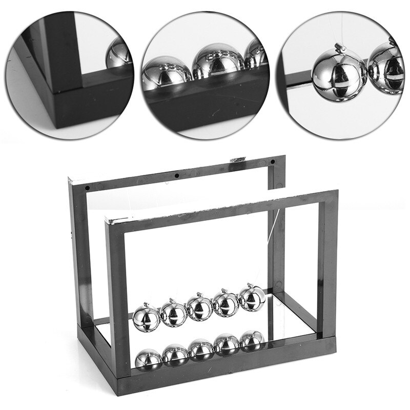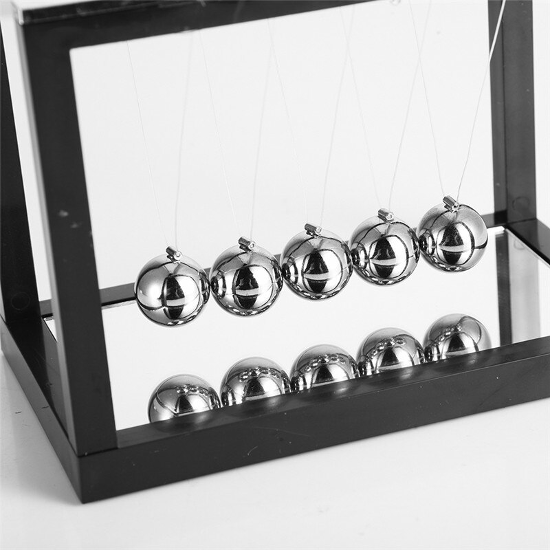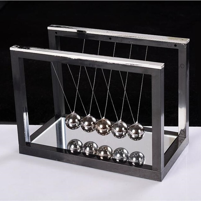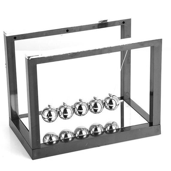 Небольшая настольная кинетическая скульптура в собранном виде демонстрирует закон сохранения энергии, открытый Исааком Ньютоном. Достаточно отвести и отпустить один из крайних шариков, и Вы увидите, как это работает. Завораживающее медитативное постукивание блестящих шаров на Вашем столе поможет сосредоточиться при обдумывании важных вопросов или наоборот, расслабиться после тяжелой работы.