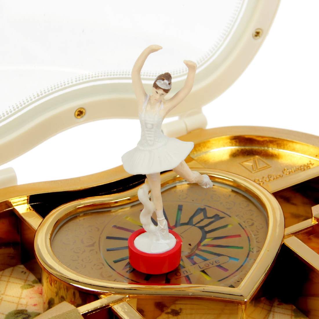 Шкатулка музыкальная с танцующей балериной Сердце белое механическая