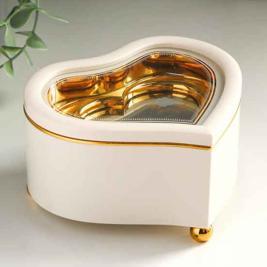 Шкатулка музыкальная механическая Белое сердце с танцующей балериной