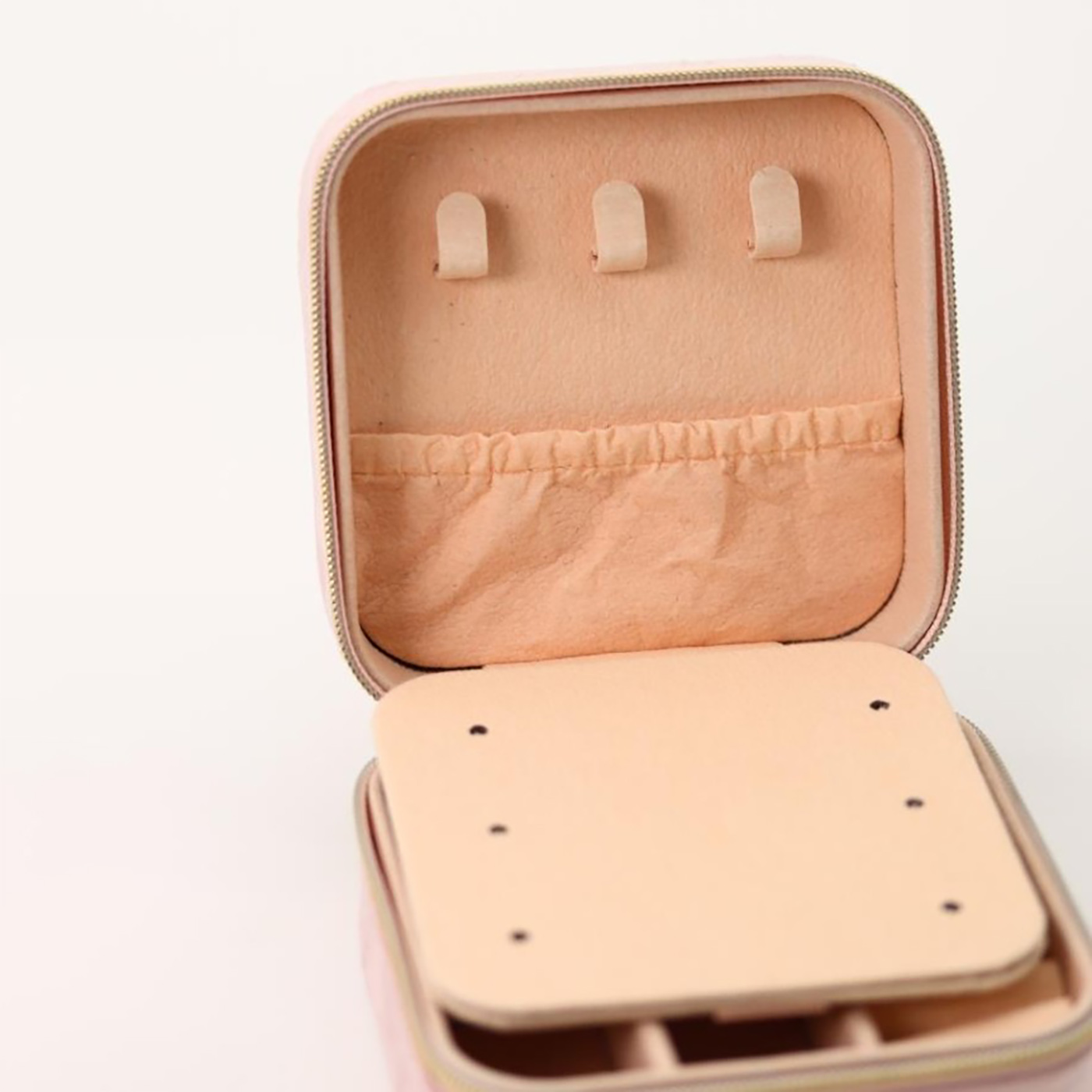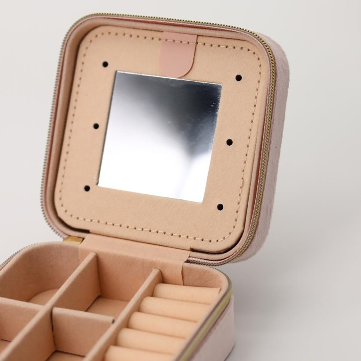 Компактный размер шкатулки (9,5 х 9,5 х 4,7 см) делает её не только стильным элементом, но и идеальным спутником в путешествиях. Легкий вес всего в 112 граммов позволяет легко уместить её в дорожную сумку или рюкзак. Закрывающаяся на молнию, шкатулка надёжно защитит ваши украшения от случайных повреждений и потерь. С этой шкатулкой ваши аксессуары всегда будут в безопасности, а вы — в центре внимания!